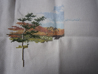 So the end of last month was pretty hectic and I didn't get to post much so I'm just realising that I haven't done a cross stitch update. March was the turn of Lakeside Farm in the rotation. Here is where I left it in January.