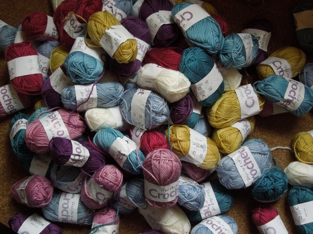A while back I subscribed to a partwork magazine and this is all the yarn that came free with it. The idea was to make a blanket and teach yourself various crochet techniques along the way....well of course I never did get round to it, and realising that I never would make the blanket that this was intended for I figured I should make use of it rather than having it hanging around forever.